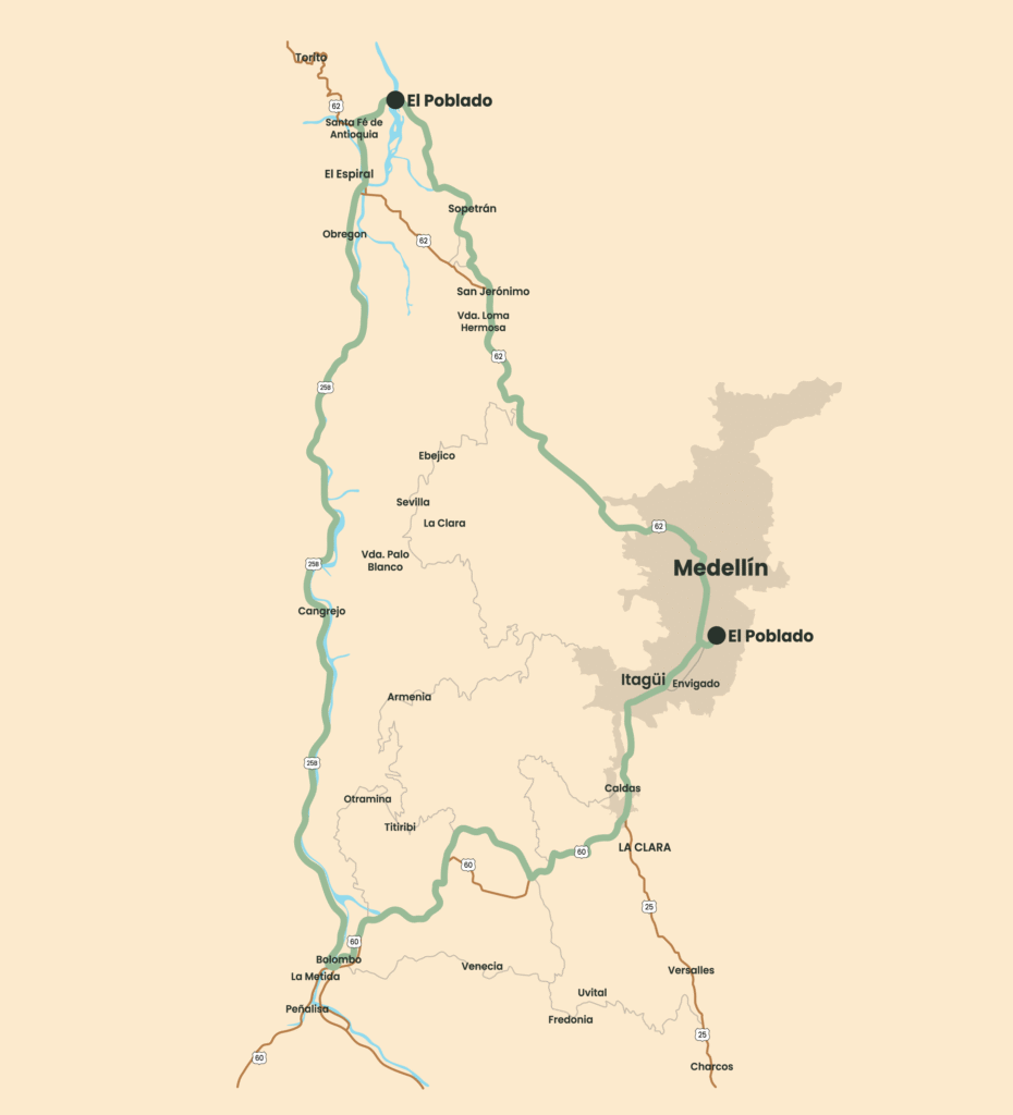 Day 1: Medellín → San Jerónimo → Santa Fé de Antioquia → Anzá → Medellín | Total kilometers: 200 km (aprox.)